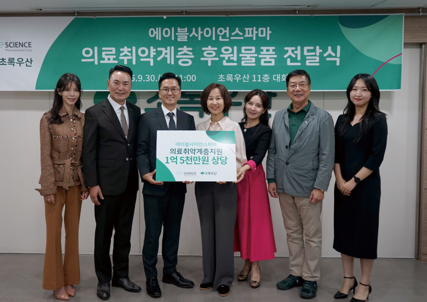 이번 기부 행사는 에이블사이언스파마(주)에서 김종현 대표이사, 전략기획부 김지연 차장, 구본아 주임이 참석했으며,